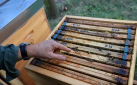 9 września 2022 r, odbyły się pierwsze zajęcia w Miejskiej Pasiece Pokazowej. W każdy pogodny piątek września na terenie Zespołu Szkół Inżynierii Środowiska przy ul. Batorego 43/49 można uczestniczyć w obserwacji życia pszczół: przeglądzie rodzin pszczelich, sprawdzaniu ilości pokarmu, miodobraniu i dokarmianiu pszczół na sezon zimowy. fot. Sławomir Kowalski