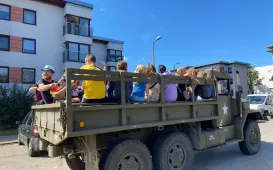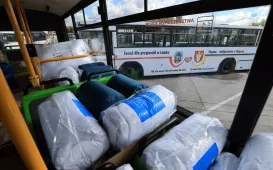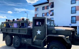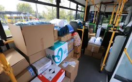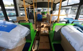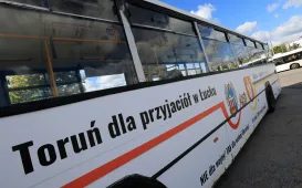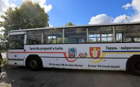 Miasto Toruń przekazuje partnerskiemu Łuckowi w Ukrainie pięć miejskich autobusów - spotkanie z tej okazji odbyło się 12 wrzesnia 2022 r. w zajezdni MZK. Pojazdy wypełnione darami wyruszą 13 września 2022 r. Fot. Sławomir KowalskiTeksańczycy w Toruniu