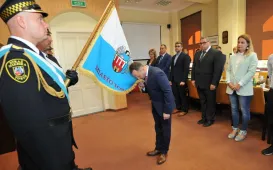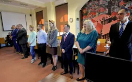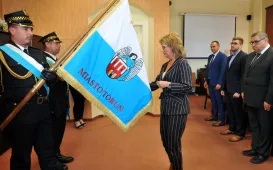 Dziesięcioro nowych pracowników Urzędu Miasta Torunia złożyło 6 września 2022 r. w obecności prezydenta Michała Zaleskiego ślubowanie na sztandar miasta. Fot. Małgorzata Litwin42. rocznica Porozumień Sierpniowych
