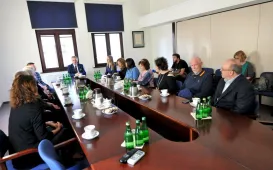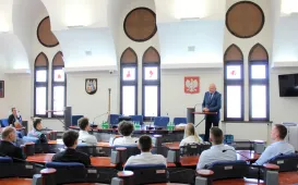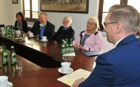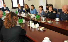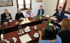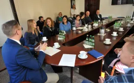 W Toruniu gości grupa przedstawicieli General Casimir Pulaski Polish American Society z El Paso - uczestników objazdowego pleneru malarskiego po Polsce. 12 września 2022 r. teksańczycy spotkali się w Urzędzie Miasta Torunia z zastępca prezydenta Adrianem Mólem. Fot. Małgorzata LitwinKamienica po rewitalizacji