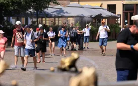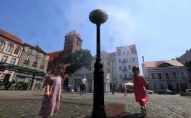 Orzeźwienie na starówce W związku z upałami, na terenie toruńskiej starówki zostały uruchomione kurtyny wodne. Zraszacze będą działały w gorące dni w godzinach 9:00-20:00. fot. Sławomir KowalskZieleń przy Kaszowniku i placu ToMiTo