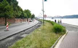Zgodnie z zapowiedzią we wtorek 28 czerwca 2022 r. o godzinie 9:00 rozpoczął się remont Bulwaru Filadelfijskiego. Na placu budowy pojawiły się frezarki. Realizatorem zadania jest toruńska firma Onde. Fot. Lech Kamiński