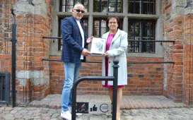 Toruński Ratusz Staromiejski wzbogacił się o wyjątkowy stojak rowerowy. Podarowany miastu przez Pana Grzegorza Olejnika, organizatora Cruising Toruń, oznaczony został jako punkt przyjazny rowerzystom. Fot. Natalia PrzytarskaSadzenie kwiatów z okazji Dnia Dziecka