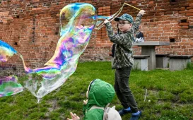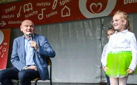 Zabawom nie było końca na imprezie, która odbyła się dzisiaj w Piernikowym Miasteczku. Podczas radosnego świętowania z okazji Dnia Dziecka życzenia najmłodszym mieszkańcom złożył prezydent Torunia Michał Zaleski. Fot. Lech KamińskiRatusz - punkt przyjazny rowerzystom
