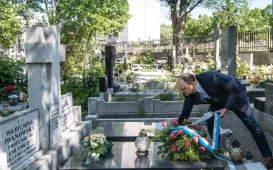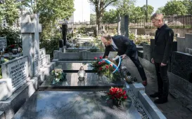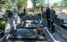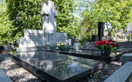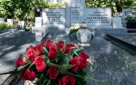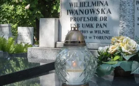23 lata temu zmarła nestorka toruńskiej astronomii prof. Wilhelmina Iwanowska. 16 maja 2021 r. przedstawiciele władz miasta - wiceprezydent Paweł Gulewski i dyrektor Biura Rady Miasta Marek Wiliński - złożyli kwiaty na grobie Honorowej Obywatelki Torunia. Fot. Lech KamińskiEMYA dla Domu Mikołaja Kopernika