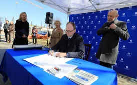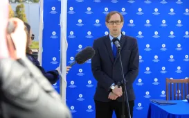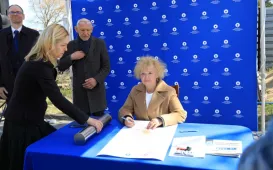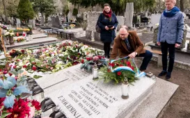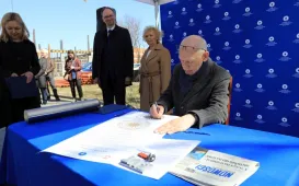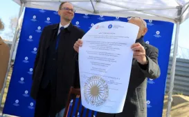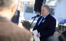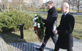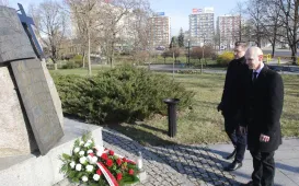 13 kwietnia 2022 roku, w Dniu Pamięci Ofiar Zbrodni Katyńskiej, przedstawiciele miasta - zastępca prezydenta Torunia Adrian Mól i radny Jacek Krzyżaniak - złożyli kwiaty pod toruńskim pomnikiem Ofiar Stalinowskiego Ludobójstwa 1939-1956, na skwerze przy alei Jana Pawła II. Fot. Adam ZakrzewskiWmurowanie aktu erekcyjnego - Centrum Nauk Technicznych