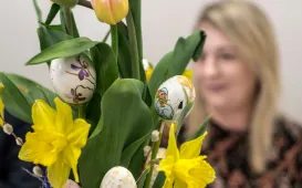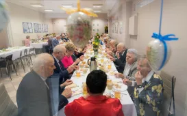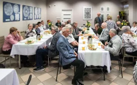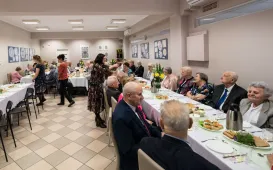 Podopieczni Dziennego Domu Pomocy Społecznej przy ul. Rydygiera w Toruniu spotkali się 13 kwietnia 2022 r. na wielkanocnym śniadaniu. Placówka działająca od 1989 r. jest ośrodkiem wsparcia o zasięgu lokalnym. Zapewnia dzienny pobyt i usługi opiekuńcze, osobom które z uwagi na wiek, chorobę lub niepełnosprawność wymagają częściowej opieki i pomocy w zaspokojeniu niezbędnych potrzeb życiowych. W tej chwili uczęszcza do niej 95 osób. Fot. Lech KamińskiW rocznice śmierci wybitnych profesorów