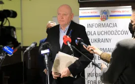 • Konferencja prasowa na dworcu Toruń Główny, 2 marca 2022 r.