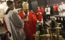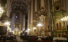 Obchody 77. rocznicy śmierci bł. ks. Stefana Wincentego Frelichowskiego odbyły się 23 lutego 2022 r. w toruńskim kościele pw. Wniebowzięcia Najświętszej Marii Panny. To w tej świątyni był on wikariuszem w latach 1938-1939. Uroczystą mszę św. odpustową odprawił metropolita gdański, abp Tadeusz Wojda. W trakcie eucharystii poświęcone zostały nowe dzwony dla kościoła mariackiego. Fot. Adam Zakrzewski
