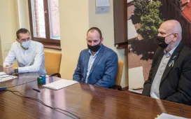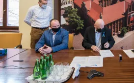 W dniu 2 marca 2022 r. prezydent Michał Zaleski podpisał umowę z z Przedsiębiorstwem Handlowo-Usługowym BUD-POL, reprezentowanym przez właściciela, Mariusza Suleckiego, na wykonanie zadania pn. ,,Poprawa efektywności energetycznej zabytkowych budynków oświatowych – termomodernizacja kompleksowa internatu nr 1 i 2 przy Pl. Św. Katarzyny 9 w Toruniu”. Zadanie to jest dofinansowane ze środków pochodzących z Programu Rządowy Fundusz Polski Ład: Program Inwestycji Strategicznych. Fot. Lech Kamiński