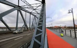 Od dzisiaj, 28 stycznia 2022 r. cała szerokość mostu im. marsz. Piłsudskiego zostaje udostępniona do ruchu. Jezdnia zyskała odwodnienie, które zapewnia odpływ wody deszczowej do podczyszczalni. Oświetlenie zostało zmienione na energooszczędne. Oprócz jezdni zostały doświetlone chodniki i ścieżki rowerowe. Fot. Sławomir Kowalski