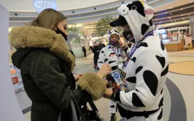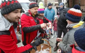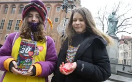30 stycznia 2022 r. odbywa się jubileuszowy, bo już 30. Finał Wielkiej Orkiestry Świątecznej Pomocy. Mimo wiatru i niepogody toruńscy wolontariusze chętnie wyruszyli na ulice miasta, aby wesprzeć akcję. Fot. Adam ZakrzewskiWiosłujemy dla WOŚP