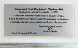Z dniem 31 stycznia 2022 r. zakończyła pracę na stanowisku Skarbnika Miasta Torunia Magdalena Flisykowska, od osiemnastu lat związana z toruńskim samorządem. W uroczystym pożegnaniu wzięli udział prezydent Michał Zaleski i jego zastępcy, przewodniczący Rady Miasta Torunia Marcin Czyżniewski oraz najbliżsi współpracownicy, w tym następczyni Magdaleny Flisykowskiej, powołana przez radnych na stanowisko Skarbnika Miasta Torunia Aneta Pietrzak. Fot. Adam Zakrzewski30. finał WOŚP - światełko do nieba