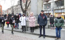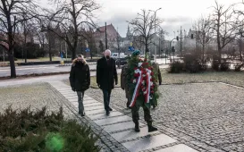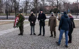 Kwiatami złożonymi pod obeliskiem w alei św. Jana Pawła II w dniu 1 lutego 2022 roku uczczona została 77. rocznica zakończenia okupacji hitlerowskiej w Toruniu. Fot. Lech KamińskiPożegnanie Skarbnik Miasta Magdaleny Flisykowskiej