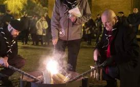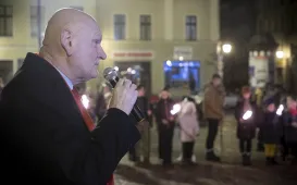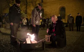 Gdy do Torunia dociera Betlejemskie Światło Pokoju, oznacza to, że święta tuż tuż. 15 grudnia 2021 r. po raz kolejny harcerze przekazali prezydentowi Torunia ten symbol Bożego Narodzenia. Fot. Wojciech SzabelskiŚwięto patrona ZSMEiE