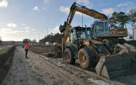 Grudniowa aura sprzyja pracom na budowie nowej linii tramwajowej do tzw. osiedla Jar. Wzdłuż ul. Watzenrodego układany jest drenaż w torowisku, na Polnej podbudowa, w al. 700-lecia trwa budowa kanalizacji deszczowej, a na ul. Długiej rozpoczęła się przebudowa magistrali wodociągowej biegnącej wzdłuż ulicy. Fot. Miejski Zakład Komunikacji w Toruniu