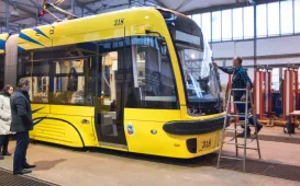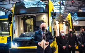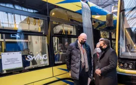 Do Torunia dotarł pierwszy z pięciu nowych tramwajów typu „swing”, które miasto za pośrednictwem Miejskiego Zakładu Komunikacji zakupiło w 2020 roku. Tramwaj został dostarczony do zajezdni w nocy z 12 na 13 grudnia 2021 r.W dniu 13 grudnia 2021 r. odbyła się prezentacja nowego pojazdu w zajezdni MZK z udziałem prezydenta Michała Zaleskiego. Fot. Lech Kamiński