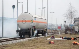 W na dworcu kolejowym PKP Toruń Główny odbył się epizod ćwiczeń "Patrol-21". Służby wzięły udział w neutralizowaniu skutków symulowanej kolizji drezyny z cysterną wypełnioną tlenkiem etylenu. Istotą ćwiczenia jest uruchomienie i prowadzenie działań przez jednostki Systemu Wykrywania Skażeń w przypadku wystąpienia zagrożenia skażeniami lub wystąpienia skażeń. fot. Lech KamińskiMecz tolerancji