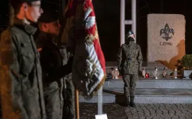 Przy Mogile – Pomniku Pomordowanych Harcerzy w Osadzie Olek nad Strugą Łysomicką w dniu 10 listopada 2021 r. odbyła się uroczysta Wieczornica Patriotyczna Jednostki Strzeleckiej 1909. Udział w niej wzięli przedstawiciele samorządu, parlamentarzyści, przedstawiciele służb mundurowych. Centralnym punktem wydarzenia było ślubowanie kadeckie 14 osób i złożenie przyrzeczenia strzeleckiego przez 4 osoby. Fot. Wojtek Szabelski