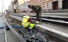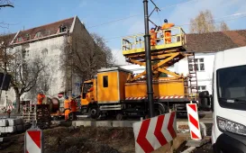 Trwają prace przy modernizacji trzech odcinków torowisk tramwajowych: w ciągu ul. Bydgoskiej, na ul. Broniewskiego pomiędzy ul. Sienkiewicza i Reja i na Szosie Lubickiej od pl. Daszyńskiego do ul. Ślaskiego. W związku z robotami od 15 listopada 2021 r. na odcinku od al. Solidarności do pętli „Olimpijska” planowane jest wyłączenie ruchu tramwajowego i wprowadzenie zastępczej komunikacji autobusowej. Fot. MZK Sp. z o.o.