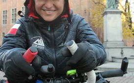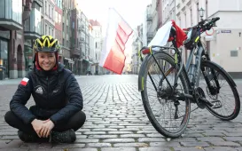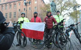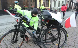 950 km - od Tatr do Helu - przejedzie na rowerze zdobywczyni Korony Ziemi Miłka Raulin w ramach rajdu „Południe-Północ” z okazji 103. rocznicy odzyskania przez Polskę niepodległości. Po drodze dołączają do niej również inni uczestnicy. 9 listopada 2021 r. rajd dotarł do Torunia. Fot. Adam Zakrzewski