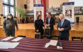 W czwartek, 28 października 2021 r. w Toruniu ruszyła największa w Polsce impreza poświęcona dronom, pojazdom autonomicznym i bezzałogowym, kosmonautyce, sztucznej inteligencji i wszystkim nowym technologiom związanym z rozwojem inteligentnej metropolii XXI wieku - DroneTech Meeting. Dwudniowe wydarzenie odbywa się w Hotelu Copernicus przy Bulwarze Filadelfijskim, a w jego otwarciu wziął udział prezydent Michał Zaleski. Fot. Wojtek SzabelskiPodpisanie umowy partnerskiej dotyczącej kształcenia zawodowego