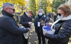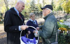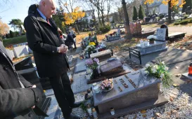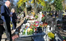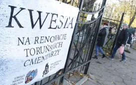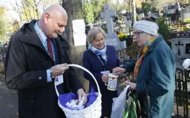 1 listopada 2021 r. po raz dziewiętnasty odbyła się kwesta na cmentarzu św. Jerzego, organizowana przez Urząd Miasta i Towarzystwo Miłośników Torunia. Znani torunianie i goście miasta zbierali datki na odnowę zabytkowych pomników najstarszej toruńskiej nekropolii. Prezydent Torunia Michał Zaleski złożył też kwiaty na gromach honorowych obywateli i osób zasłużonych dla miasta . Fot. Małgorzata LitwinKwesta na cmentarzu św. Jerzego