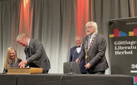 W Starym Ratuszu w Getyndze 23 października 2021 r. Dorota Masłowska odebrała dyplom i medal Nagrody Miast Partnerskich Torunia i Getyngi im. S. B. Lindego 2020.