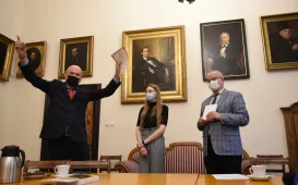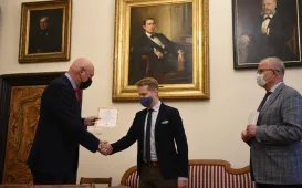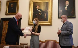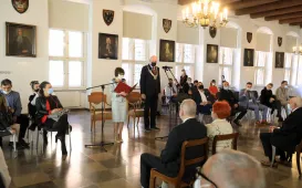 W Ratuszu Staromiejskim w Toruniu 6 października 2021 r. wręczone zostały nagrody w XXIX konkursie na najlepsze prace magisterskie i dyplomowe poświęcone Toruniowi. W tym roku 4 osoby nagrodzono, jedną wyróżniono. Konkurs jest objęty Honorowym Patronatem Prezydenta Miasta Torunia Pana Michała Zaleskiego i organizowany dzięki wsparciu finansowemu Gminy Miasta Toruń. Fot. Jacek SmarzPodwójne jubileusze małżeńskie