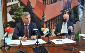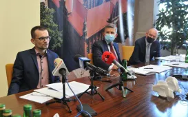 8 października 2021 r. Gmina Miasta Toruń zawarła umowę z firmą Sprint SA, która zrealizuje w Toruniu system naprowadzania pojazdów na wolne miejsca parkingowe w rejonie Zespołu Staromiejskiego. Miasto liczy, że rozwiązanie to ułatwi kierowcom wyszukiwanie wolnych miejsc postojowych, a co za tym idzie, ograniczy zbędny ruch aut w rejonie starówki. Umowę podpisali prezydent Michał Zaleski i wiceprezes firmy Sprint Waldemar Matukiewicz. Fot. Małgorzata Litwin