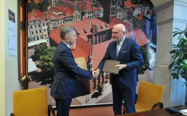 5 października 2021 r. konsul generalny Federacji Rosyjskiej Sergiej Semionow spotkał się z prezydentem Torunia Michałem Zaleskim. Podczas wizyty rozmawiano o współpracy turystycznej, biznesowej, sportowej i kulturalnej. Fot. Natalia PrzytarskaIV konferencja Firma Przyszłości