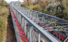 Trwają prace na moście drogowym im. Józefa Piłsudskiego - w pażdzierniku 2021 r. montowany jest ciąg pieszo-rowerowy od strony starówki. Fot. Adam ZakrzewskiInauguracja roku akademickiego 2021/2022 w WSB