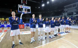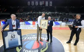 Zwycięstwem 99:85 zakończył się pierwszy mecz Twardych Pierników z GTK Gliwice u siebie w sezonie 2021/22. Wydarzenie było także okazją do uroczystego pożegnania z zespołem kapitana Aleksandra Perki. Fot. Sławomir Kowalski