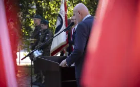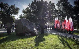 Przy obelisku na pl. Św. Katarzyny w dniu 27 września 2021 roku uczczono Dzień Polskiego Państwa Podziemnego. To święto ustanowione na pamiątkę powołania Służby Zwycięstwu Polski. Fot. Wojtek Szabelski