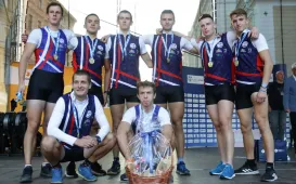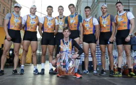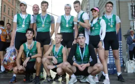 26 września 2021 r. na toruńskiej starówce odbyła się trzecia edycja nietypowego maratonu wioślarskiego ósemek Run&Row. Spośród 10 załóg zwycięska okazała się drużyna z Litwy. Fot. Adam Zakrzewski