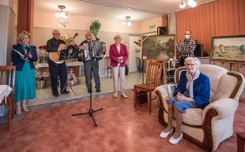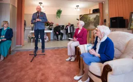 Setne urodziny świętowała 28 września 2021 r. Janina Robaczewska - zasłużona torunianka, wybitna nauczycielka i wychowawczyni wielu pokoleń torunian. Jubileuszowe spotkanie odbyło się w Domu Pomocy Społecznej przy Szosie Chełmińskiej, gdzie pani Janina mieszka od 2018 r. Nestorkę oświaty, nauczycielkę języka polskiego i wychowawczynię dla wielu torunian odwiedzili tego dnia prezydent Torunia Michał Zaleski, członek zarządu województwa kujawsko-pomorskiego Sławomir Kopyść oraz koleżanki i koledzy ze Związku Nauczycielstwa Polskiego. Fot. Lech Kamiński