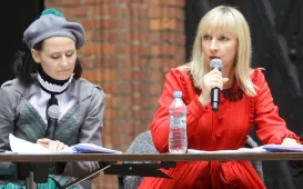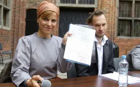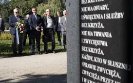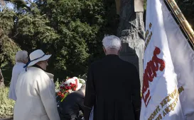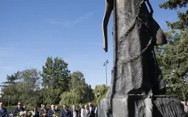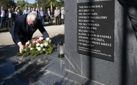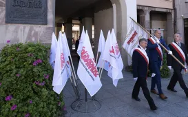 6 września 2021 r. w Toruniu odbyły się uroczystości z okazji 41. rocznicy podpisania "Porozumień Sierpniowych" i powstania NSZZ "Solidarność". Po mszy świętej w kościele WNMP złożono kwiaty pod tablicą "Solidarności" na budynku Zarządu Regionu przy placu Rapackiego i pod pomnikiem ks. Jerzego Popiełuszki. Fot. Wojtek SzabelskiPani Dulska na dziedzińcu ratusza