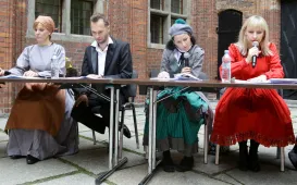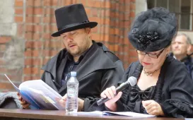 W ramach Narodowego Czytania aktorzy Teatru Baj Pomorski oraz zastępca prezydenta Torunia Paweł Gulewski odczytali 4 września 2021 r. na dziedzińcu Ratusza Staromiejskiego fragmenty „Moralności pani Dulskiej” Gabrieli Zapolskiej. fot. Adam Zakrzewski10. paraolimpiada w Toruniu