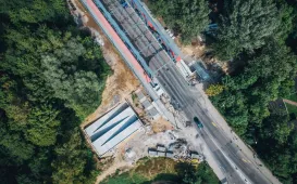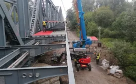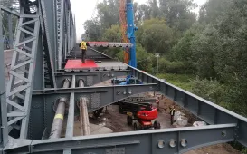 Na moście drogowym im. marsz. J. Piłsudskiego trwają prace przy budowie drugiego ciągu pieszo-rowerowego. Pasy dla pieszych i rowerzystów powstają po wschodniej stronie przeprawy. fot. MZD/Błażej Antonowicz Focus ArtDrugi ciąg pieszo-rowerowy na moście