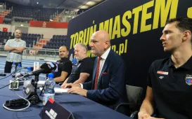 Dzięki wsparciu Gminy Miasta Toruń, lokalnych sponsorów i kibiców Twarde Pierniki S.A. wystartują w najbliższym sezonie Energa Basket Ligi. Mimo wycofania się sponsora strategicznego z dalszej współpracy, udało się ustabilizować sytuację finansową i kadrową drużyny. 1 września 2021 r. w Arenie Toruń odbyła się konferencja toruńskiego klubu. fot. Sławomir Kowalski