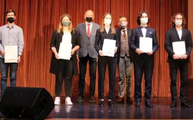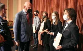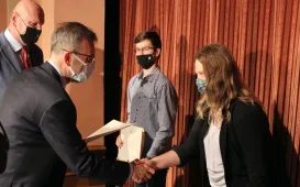 30 sierpnia 2021 r. w Młodzieżowym Domu Kultury w Toruniu prezydent Michał Zaleski wręczył nagrody 27 najzdolniejszym absolwentom toruńskich liceów ogólnokształcących, techników i szkoły muzycznej. fot. Adam ZakrzewskiPodpisanie umów na budowę linii tramwajowej na Jar