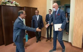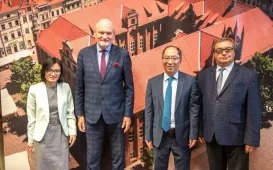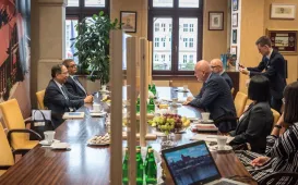Ambasador Socjalistycznej Republiki Wietnamu w Polsce Nguyen Hung odwiedził Toruń. Jednym z punktów wizyty było spotkanie z prezydentem Torunia Michałem Zaleskim, które odbyło się 19 sierpnia 2021 r. fot. Lech Kamiński