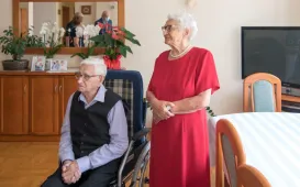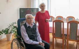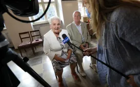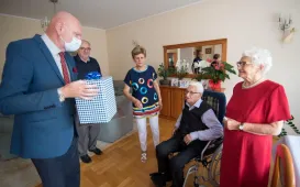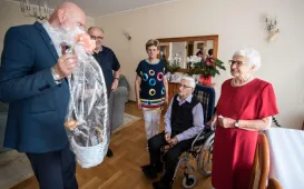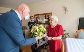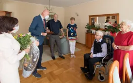 Z okazji 70. rocznicy ślubu państwo Wanda i Piotr Bogorodziowie spotkali się z prezydentem Torunia Michałem Zaleskim. fot. Lech KamińskiJubileusze małżeńskie, 17.08.2021, godz. 14:00