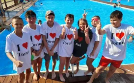 Animacje nurkowe, konkurs tańca limbo, mecze piłki wodnej, dyskoteka w wodzie – to atrakcje z jakich było można skorzystać w trakcie piątkowego „All Day Beach Party”. Na wydarzenie zaprosili Wydział Sportu i Rekreacji UM, MOSiR i Stowarzyszenie GoSport! Fot. Stowarzyszenie GOSPORT!Toruń Kocha Rolki 2021