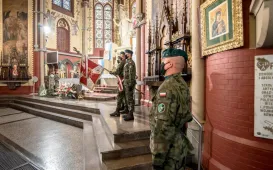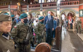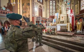 15 sierpnia 2021 roku w Toruniu obchodzono Święto Wojska Polskiego. Święto rozpoczęła msza św. w Kościele Garnizonowym, odprawiona pod przewodnictwem Biskupa Toruńskiego Wiesława Śmigla w intencji ojczyzny. Następnie kolumna wojskowa przemaszerowała na Rynek Nowomiejski, gdzie odbyła się uroczystość wojskowa: podniosłe odegranie hymnu państwowego, przyjęcie meldunku przez Dowódcę Garnizonu Toruń, apel pamięci i salwa honorowa, Pieśń Reprezentacyjna Wojska Polskiego oraz przemówienia okolicznościowe. Na koniec złożono kwiaty pod pomnikiem marszałka Józefa Piłsudskiego. Fot. Lech Kamiński
