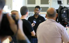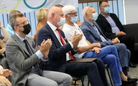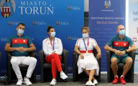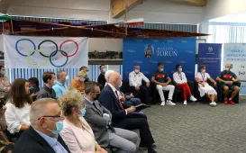 W dniu 12 sierpnia 2021 r. w sali Uniwersyteckiego Centrum Sportowego odbył się trening pokazowy nowej toruńskiej drużyny siatkarskiej - Anioły Toruń. Następnie w Toruńskim Inkubatorze Technologicznym odbyło się spotkanie z zawodnikami oraz współautorem projektu i głównym udziałowcem klubu Wilfredo Leonem. W spotkaniu wziął udział prezydent Michał Zaleski. Fot. Sławomir KowalskiSpotkanie z Zofią Kaczmarek, studentką Cambridge