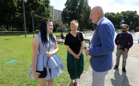 Torunianka Zofia Kaczmarek, laureatka międzynarodowych olimpiad astronomicznych, realizuje swoje marzenie – jesienią rozpoczyna studia na Uniwersytecie w Cambridge. W dniu 12 sierpnia 2021 r. spotkał się z nią prezydent Michał Zaleski, by w uznaniu osiągnięć podarować przydatny na nowym etapie życia prezent - rower elektryczny. Fot. Sławomir KowalskiLato w Zielonej Bramie