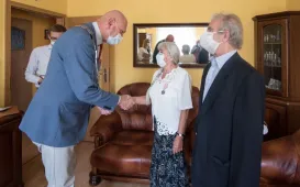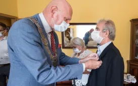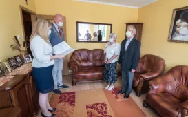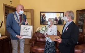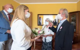 Czworo finalistów Igrzysk Olimpijskich Tokio 2020, w tym srebrne medalistki, pojawiło się w Przystani AZS w dniu 13 sierpnia 2021 r., by z rąk prezydenta Michała Zaleskiego odebrać gratulacje i nagrody za wyniki na igrzyskach. W stpotkaniu udział wzięli: Katarzyna Zillmann wioślarka z AZS UMK w czwórce podwójnej kobiet, Jolanta Ogar– żeglarka z UKŻ Wiking - w żeglarstwie w klasie 470, Mirosław Ziętarski - wioślarz z AZS UMK w dwójce podwójnej mężczyzn oraz Michał Szpakowski - mieszkańca Torunia w męskiej czwórce bez sternika (zawodnik CWKS Zawisza Bydgoszcz). Fot. Sławomir KowalskiJubileusze małżeńskie, 12.08.2021