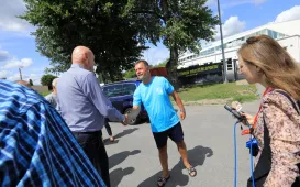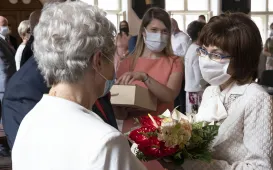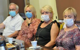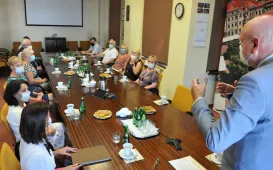 Na emeryturę odchodzi z Urzędu Miasta Torunia duża grupa długoletnich pracowników. 29 lipca 2021 r. pożegnał ich prezydent Torunia Michał Zaleski. Z magistratem żegnają się: Jolanta Swinarska, Maria Fiderewicz-Kubacka, Grażyna Młotkowska, Beata Piotrowska, Marek Palmowski, Sławomir Szczerbiński i Andrzej Rabuszak. Przy kawie i słodkim poczęstunku była okazja do wspomnień o latach pracy w urzędzie i planach na zasłużony odpoczynek. Galeria - Fot. Małgorzata Litwin Andrzej Rabuszak z prezydentem Torunia Michałem Zaleskim - Fot. Natalia Przytarska