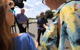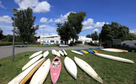 Uczestnicy 60. Międzynarodowego Spływu Kajakowego „Pojezierze Brodnickie, Drwęca, Wisła” zatrzymali się w Toruniu. To jeden z siedmiu przystanków na trasie. Z uczestnikami spływu w dniu 9 sierpnia 2021 r. przy Przystani AZS Toruń spotkał się prezydent Michał Zaleski . Fot. Sławomir Kowalski